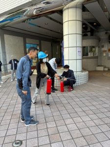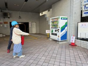 当日は、消火器の取扱いや初期消火の手順を実践形式で確認し、災害発生時の対応について理解を深めました。